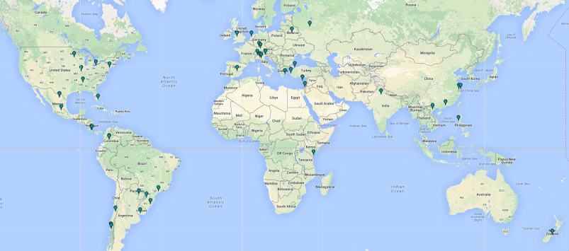 Alemania, Bielorrusia, Brasil, Chile, China, Colombia, Costa Rica, Chipre, España, Estados Unidos, Filipinas, Grecia, India, Israel, Italia, Kenia, México, Países Bajos, Nueva Zelanda, Paraguay, Reino Unido, Serbia, Turquía, Uruguay, Vietnam y más.